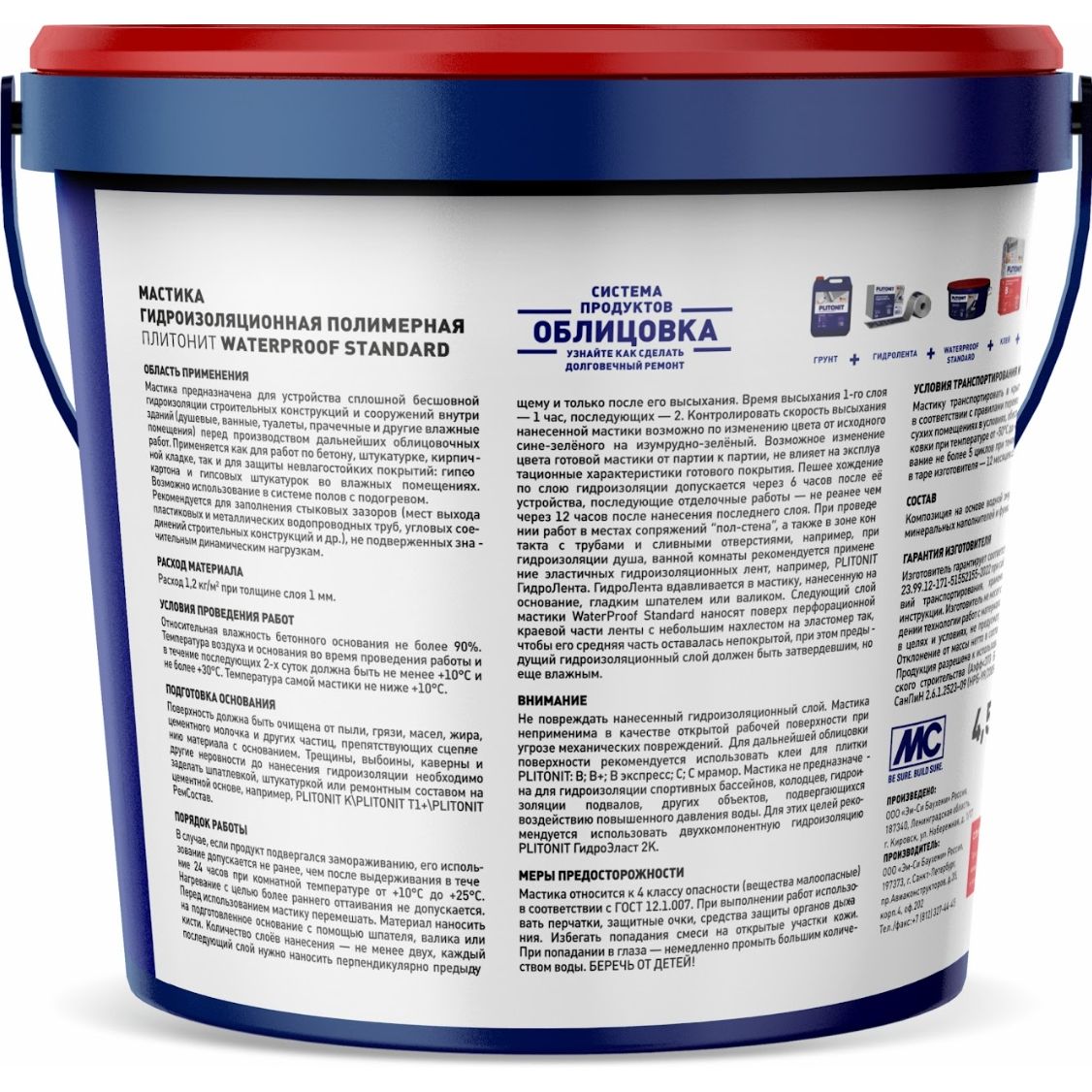 Доставка Гидроизоляция эластичная Plitonit (Плитонит) WaterProof Standard 4,5 кг из Москва в районы и города Строительный рынок Славянский мир, 41-й км МКАД, бывшая Мельница, Тёплый стан, Коммунарка, Мосрентген, Видное, Мамыри, Одинцово, Подольск, Щербинка, Троицк, Красногорск, Домодедово, Краснознаменск, ЮВАО, ЮЗАО, ЮАО, Новомосковский АО