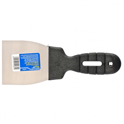 Полотно шпателя изготовлено из нержавеющей стали. Облегченная ручка из ударопрочной пластмассы. Ручка шпателя имеет специальную (изогнутую) форму, что обеспечивает максимально удобную работу. Шпатель предназначен для нанесения, выравнивания и сглаживания шпаклевочного слоя на больших и малых поверхностях.