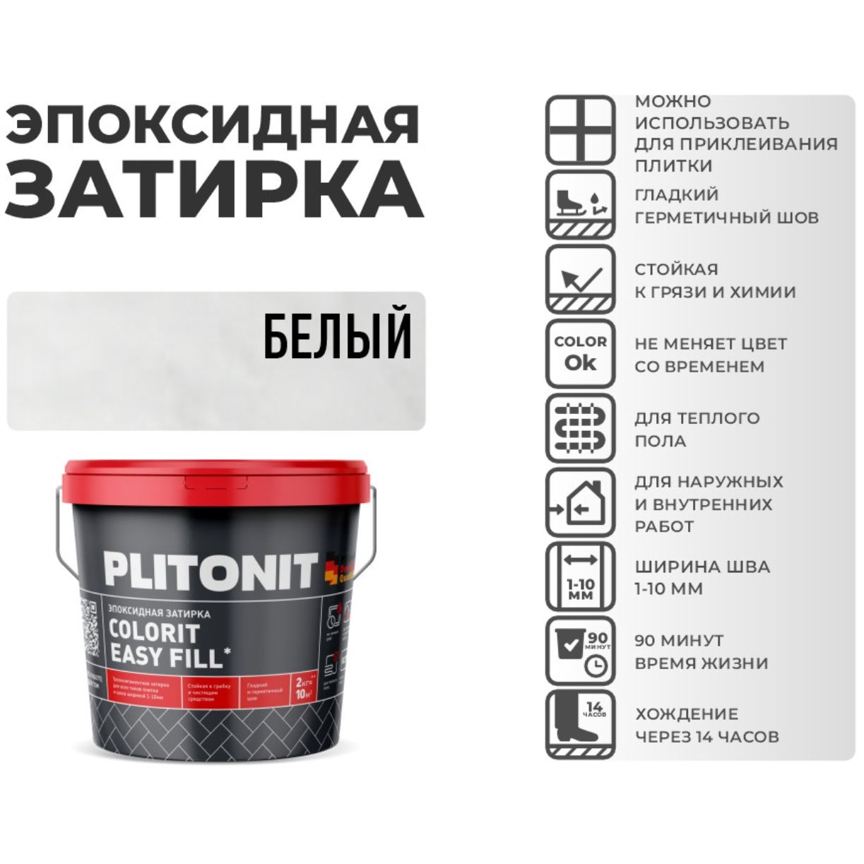 Доставка Затирка Plitonit (Плитонит) Colorit Easy Fill 3-компонентная эпоксидная белая 2 кг из Москва в районы и города Строительный рынок Славянский мир, 41-й км МКАД, бывшая Мельница, Тёплый стан, Коммунарка, Мосрентген, Видное, Мамыри, Одинцово, Подольск, Щербинка, Троицк, Красногорск, Домодедово, Краснознаменск, ЮВАО, ЮЗАО, ЮАО, Новомосковский АО